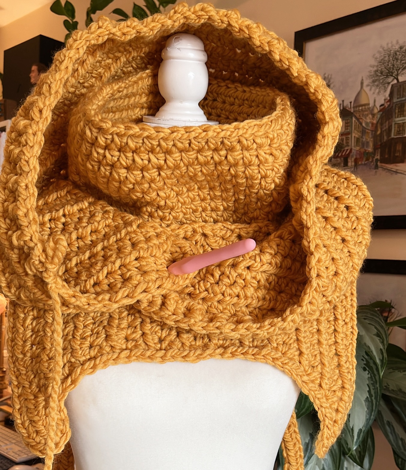 The hooded design adds a touch of style and versatility to your wardrobe. Whether you want to stay cozy while running errands or add a fashionable accessory to your outfit, this cowl has got you covered! Literally!